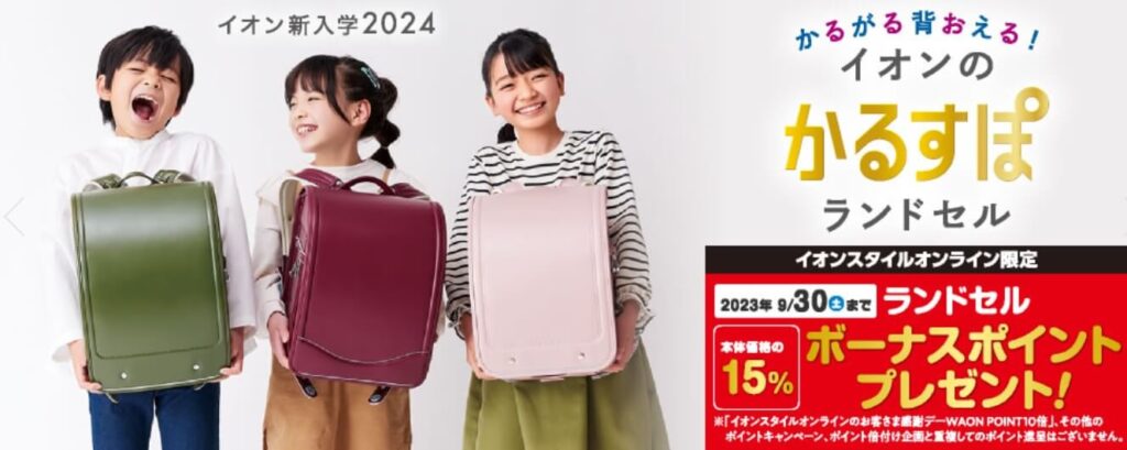出典:イオンスタイルオンライン2024年9月30日(月)までにイオンスタイルオンラインでランドセル購入するとボーナスポイントが付与されます。